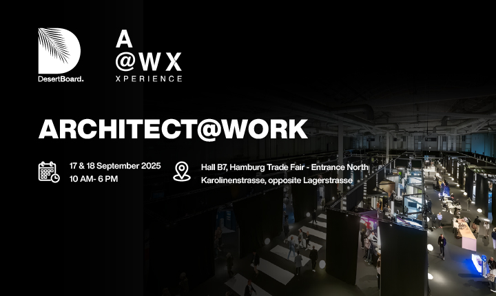 Architect@Work is a premier event for architects and interior designers, where innovation, inspiration, and connection come together in a curated, lounge-style environment. Only the most innovative products, approved by a judging panel, are featured. This makes it an ideal platform for DesertBoard to present PSB® to Germany’s design community.