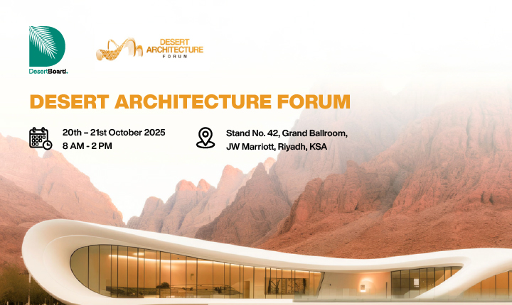 DesertBoard participated as an exhibitor at the Desert Architecture Forum 2025, held on October 20–21, 2025, at the JW Marriott, Riyadh, Kingdom of Saudi Arabia. The two-day event gathered leading architects, designers, developers, and sustainability experts to explore innovative approaches to desert living and environmentally responsive design.
